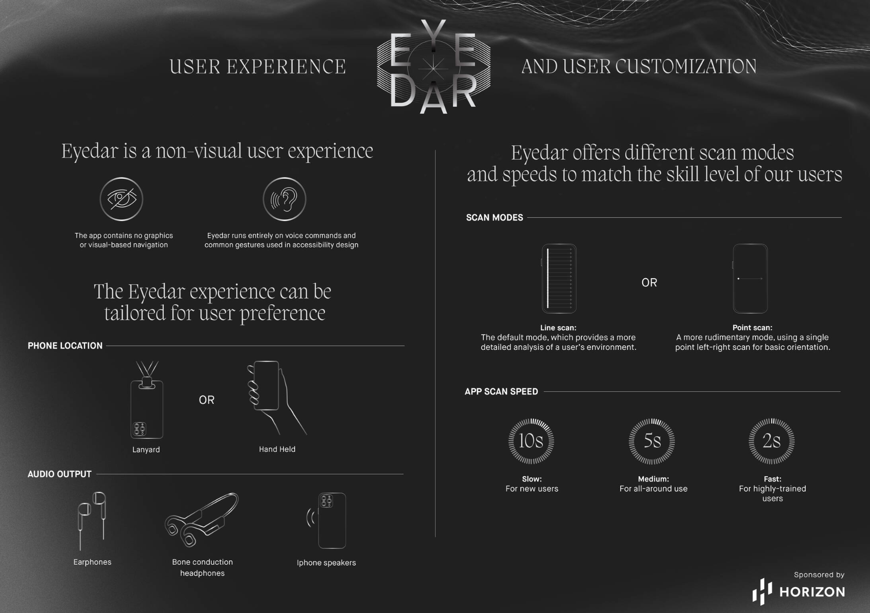 Developed Eyedar for Horizon Therapeutics. This app uses lidar technology to help the blind and visually impaired population to navigate their world.